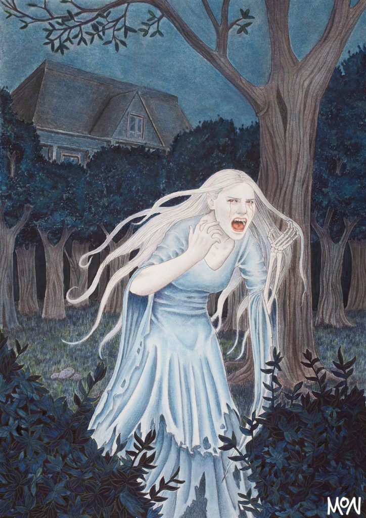 It is rumored that the Banshee hovers over Ireland and a magnetic field will pull the spirit to a house, near their window or somewhere close to the house, and scream, weep, or sing to warn of an impending death.